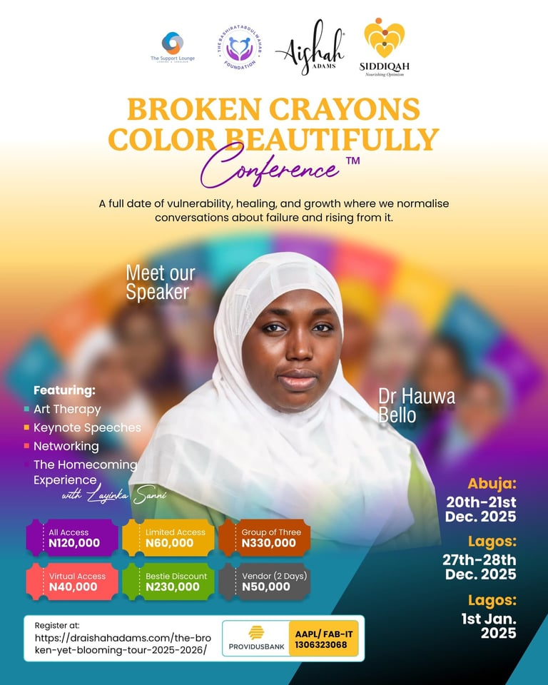 As a member of the American Psychological Association (APA) and Nigeria Psychological Association (NPA), Hauwa Bello is not only a dedicated practitioner but also a Speaker, Writer, and advocate for women's rights. Happily married and blessed with children, she derives joy and fulfilment from empowering others and herself, embodying a passionate commitment to guiding individuals and families towards their desired destinations.