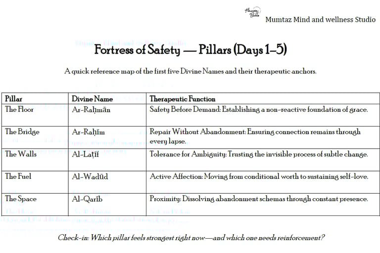 In my practice, I often tell clients that healing is like building a home: you cannot decorate the rooms until the foundation is poured and the walls are steady. These first five Divine Names are not just ideas—we have been living them as structural pillars for our internal Fortress of Safety.