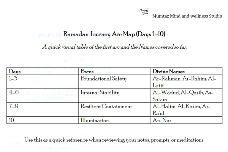 Day 10 completes our first arc of Mercy, and it is the perfect closing note for these opening days. After nine days of building safety, love, tenderness, and nearness, we now turn to An-Nūr (The Light) and ask for clarity. This reflection explores a powerful therapeutic truth: clarity often follows safety, and sometimes what feels like “not knowing” is actually mercy in timing. If you have been anxious about the unknown, this post will help you trust hidden clarity and ask for the light you are ready to carry.