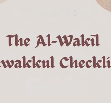This Tawakkul Checklist is a practical guide for anyone who is doing their best but still feels stuck in overthinking, re-checking, and carrying outcomes that are not theirs to carry. Rooted in Al-Wakīl, it helps you tie your camel with responsibility, then hand over the rest with trust. Use it to move from hypervigilance into selective focus, so you can act with integrity and then rest with peace.